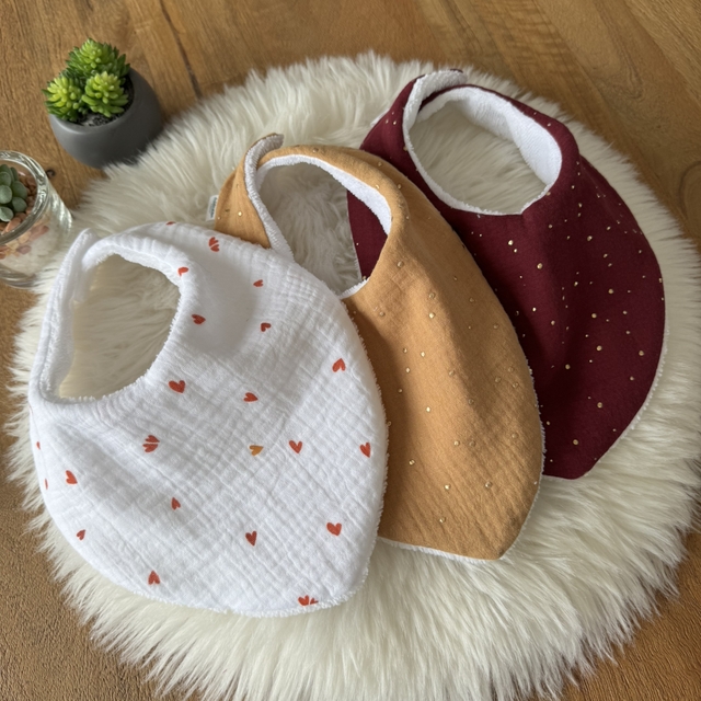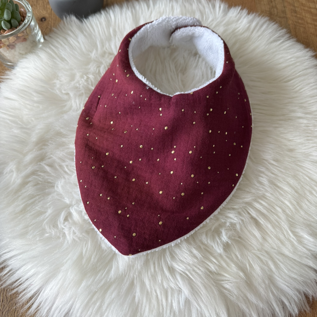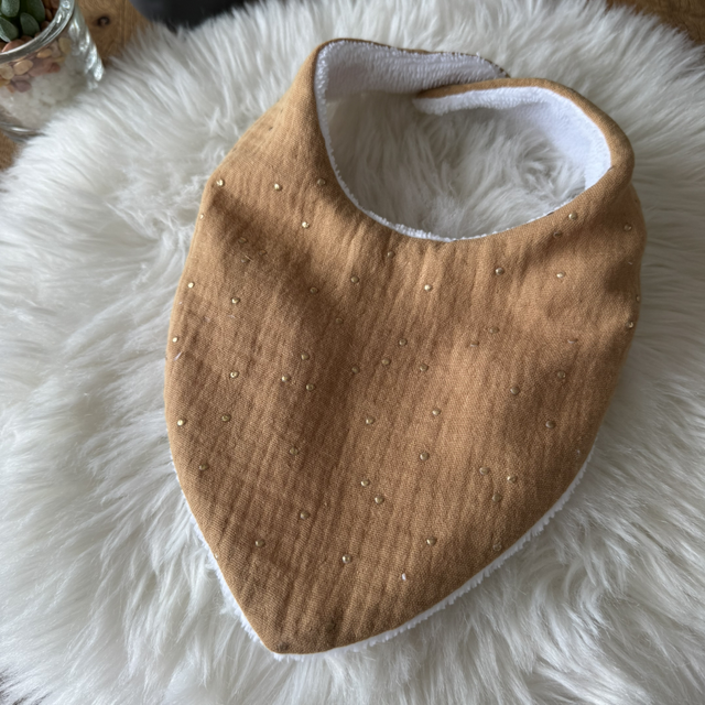 Matière : Gaze de coton pois or doublé éponge bambou blanche toute douce